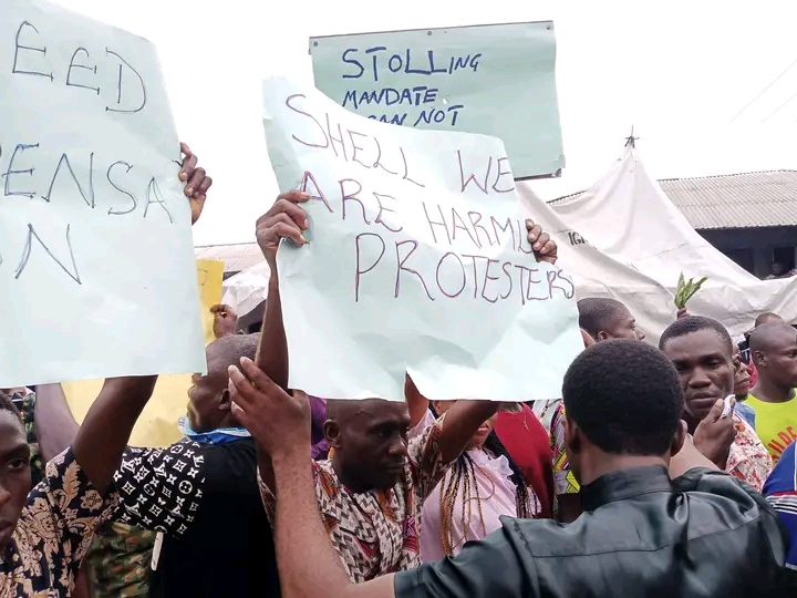 Residents of Bodo City Community in Gokana LGA, in Rivers State Nigeria, staged another peaceful and rather ‘aggressive‘ protest against Shell Plc over recent oil spills, environmental damages in the Community.