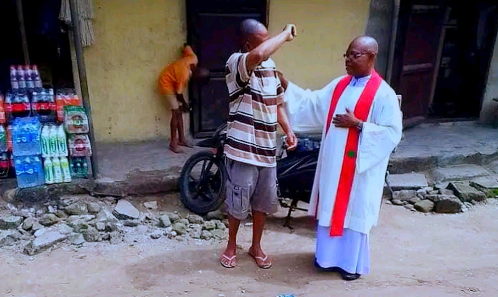 In a move that have caused so many Positive reactions both offline and online, The priest is quoted to have offered prayers and words of hope to many sick people in the Community, also administering the Holy Communion to many.
